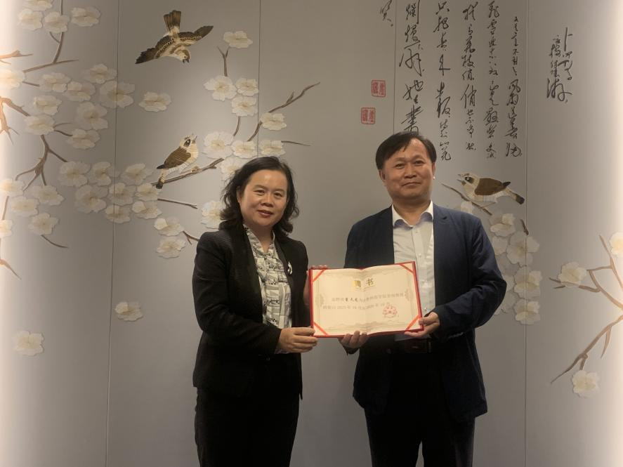 10月27日下午,7003全讯白菜网原数理系1992届校友、全国师德先进个人、山东省特级教师、青岛二中正高级教师董天龙受聘客座教授仪式在青岛蓝谷国际酒店会客厅举行。学校党委副书记赵敏出席仪式,数学学院院长曹廷彬、副院长刘春晗、办公室主任陈凤芹参加活动。