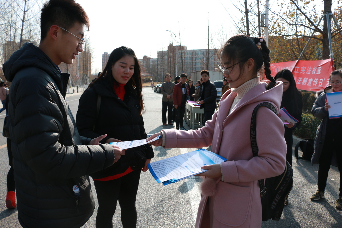 本次宣传活动一是深入学习宣传宪法,宣传宪法是国家的根本大法,党的领导是宪法实施最根本保证,作为推动深入学习宣传贯彻党的十九大精神的具体举措,目的在于学习宣传以宪法为核心的中国特色社会主义法律体系,深化依法治国实践,不断增强广大青年学生遵法学法守法用法意识;二是活动中发放了《致济南市章丘区大学生的一封信》、《国家宪法日》、《法律知识漫画读本》、《大学生就业劳动纠纷预防》等宣传资料和宣传产品,接受学生咨询达百余人次,现场放置的抵制不良校园网络借贷、防范非法集资宣传材料则吸引了大量学生驻足参观,活动在全校营造了浓厚的平安校园建设氛围;三是培养学生的遵纪守法意识,努力构建和谐、法治校园,开展“法律法规护我行——大学生知识答卷”学习与答题活动,校团委学生会权益部组织大学生认真学习《高等教育学生管理规定》、《劳动合同法》等法律法规,宣传大学生作为公民层面的基本权利和义务等基本内容,通过活动的组织实施,使答卷活动真正起到学习宣传的作用,提高了对于法律常识的知晓率,扩大了影响面,积极营造了利于维护自身合法权益和特殊利益的舆论氛围和良好环境,使同学们通过此次活动能够发自内心拥护和真诚信仰法律,自觉守法、遇事找法、解决问题靠法。