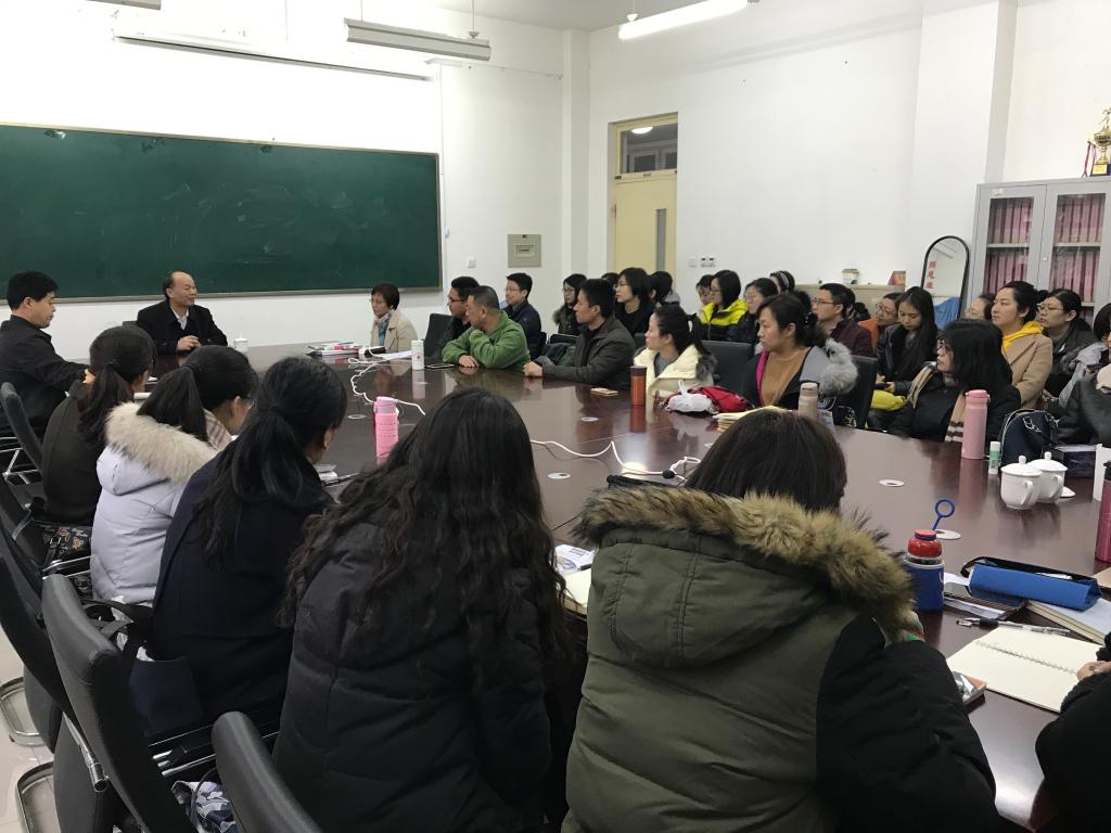 会上,王玉华首先向学院全体老师拜年,向全体老师通报了学校中层干部换届的基本情况,重点介绍了外国语学院干部调整情况。在干部换届和新学期开学之际,王玉华对外国语学院的整体工作寄予厚望,并结合学院特点提出明确的要求:一是外国语学院的整体工作要在本学期上新台阶,要出新思路,要采取新措施,要力争走在前列;二是扎实做好教学单位的业务工作。重点抓好学风建设,集中精力把考研率、专升本率等学生发展重要指标提升上来,并将此项工作作为2018年度二级学院党政工作重点工作;切实做好英语四级、六级、八级等级考试工作,提高全讯白菜官网外语教学水平和影响力;要想办法调动广大师生的积极性,把目标管理通过“让数据说话”的方式体现出来;要做好学校开展的职称岗位考核工作的配合工作,切实提高岗位站位,实现真正的目标管理;重点落实好学科建设工作。把学科目标规划好,学科方向确定好,学科团队打造好,要引导教师向学科发展靠拢,用学术成果支撑学科发展。要通过扎实的工作,取得的学科成效在行业领域内、在社会上有一定的话语权;要引导年轻教师提高工作标准,进一步开阔发展视野;确定好清晰的学科发展规划,发展方向不能过于分散。二级学院要将学科发展工作作为党政班子重点考虑的大事情来对待。同时,要求党政班子要对每一位教师的发展方向给予专门指导。三是高度重视党建工作。即将开展的“不忘初心、牢记使命”的主题教育活动要求全体师生特别是党员领导干部的思想、行动紧跟党中央步伐;教师讲课要讲究课堂纪律,牢记讲台有纪律的政治要求;全体师生要牢记“四个意识”,坚定政治立场,确保学院安全稳定的政治局面,保障学校事业又好又快发展。