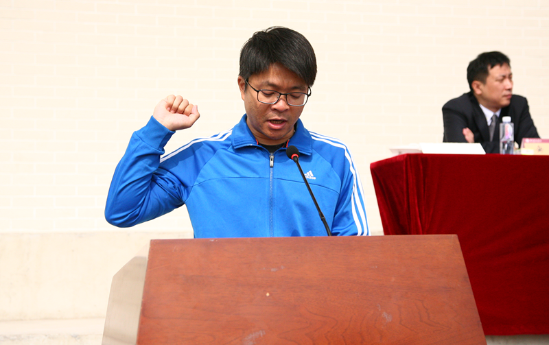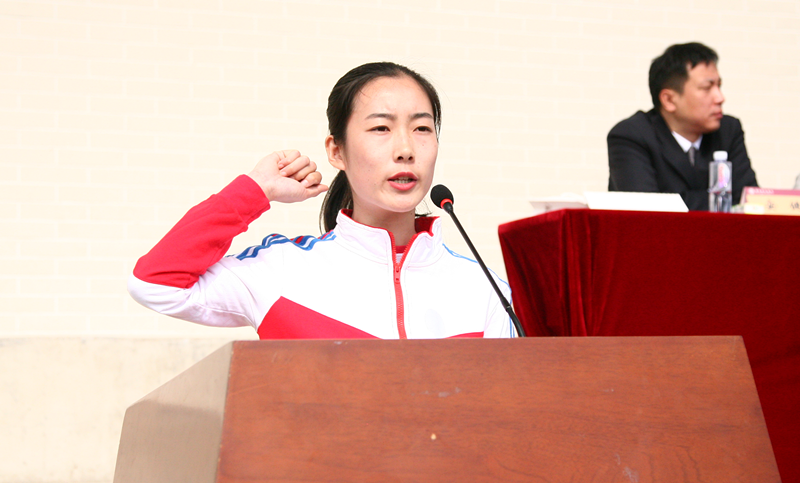 运动员代表于文君、裁判员代表刘飞庄严宣誓,并代表所有裁判员和运动员承诺将在比赛中恪守体育道德,遵守竞赛规则,坚持公平竞赛。