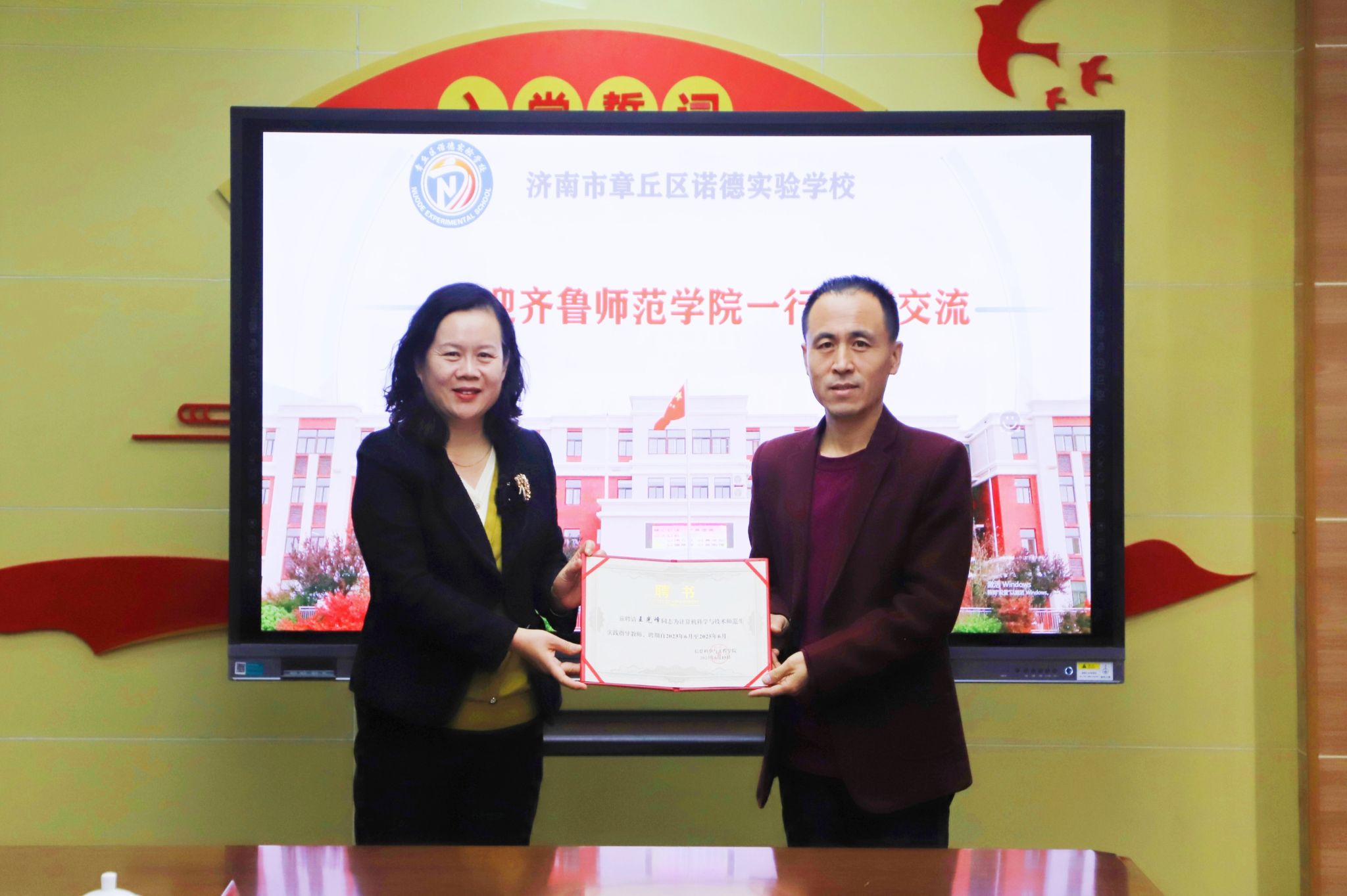 为进一步落实师范生教育实践“三习贯通”培养机制,丰富创新教育实践形式,10月30日上午,学校党委副书记赵敏带队前往章丘区诺德实验学校考察实践基地。