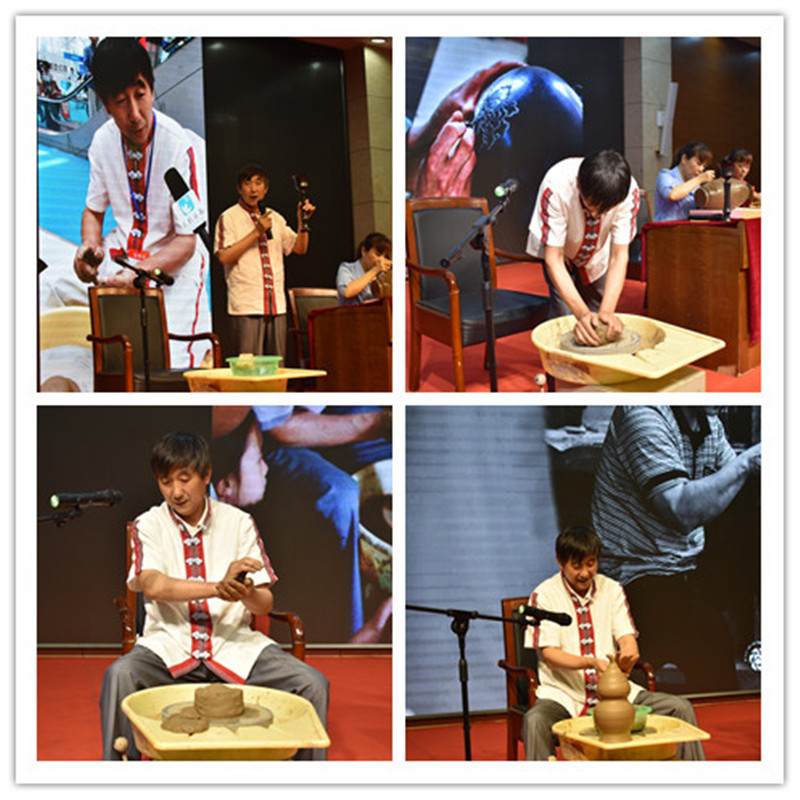 龙山黑陶文化是章丘文化的重要组成,龙山黑陶是我国新石器时代晚期的一种文化。济南章丘龙山黑陶传承人张国庆及其团队成员将自己的黑陶作品带到了活动现场,通过现场制作黑陶,使同学们直观的去观察、了解黑陶,大大提高了同学们对黑陶及相关历史文化的兴趣。活动最后,张国庆为7003全讯白菜网七十周年校庆制作了黑陶并镌刻校训。
