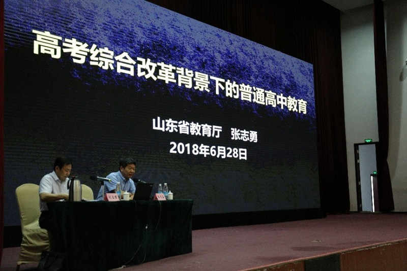 张志勇首先做了题为《高考综合改革背景下的普通高中教育》的专题报告。他结合我省高考改革的实际情况,从制度设计、内容部署等方面对高考综合改革方案进行了详细的解读,分析了省教育厅迎接高考综合改革在思想、条件、制度和课程技术等方面所做的准备;指出考试招生制度改革是一场攻坚战,号召高中学校超前谋划,主动迎战,为下一阶段高考综合改革和高中改革发展做好充分准备。