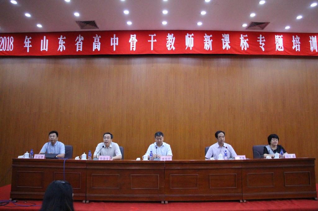7月31日-8月7日,由全讯白菜官网和山东省教育科学研究院共同主办的2018年山东省高中骨干教师新课标专题培训分两期在烟台成功举办,校党委书记王玉华、副校长刘德增、山东省教育科学研究院党委书记、院长申培轩分别出席开班仪式并讲话。
