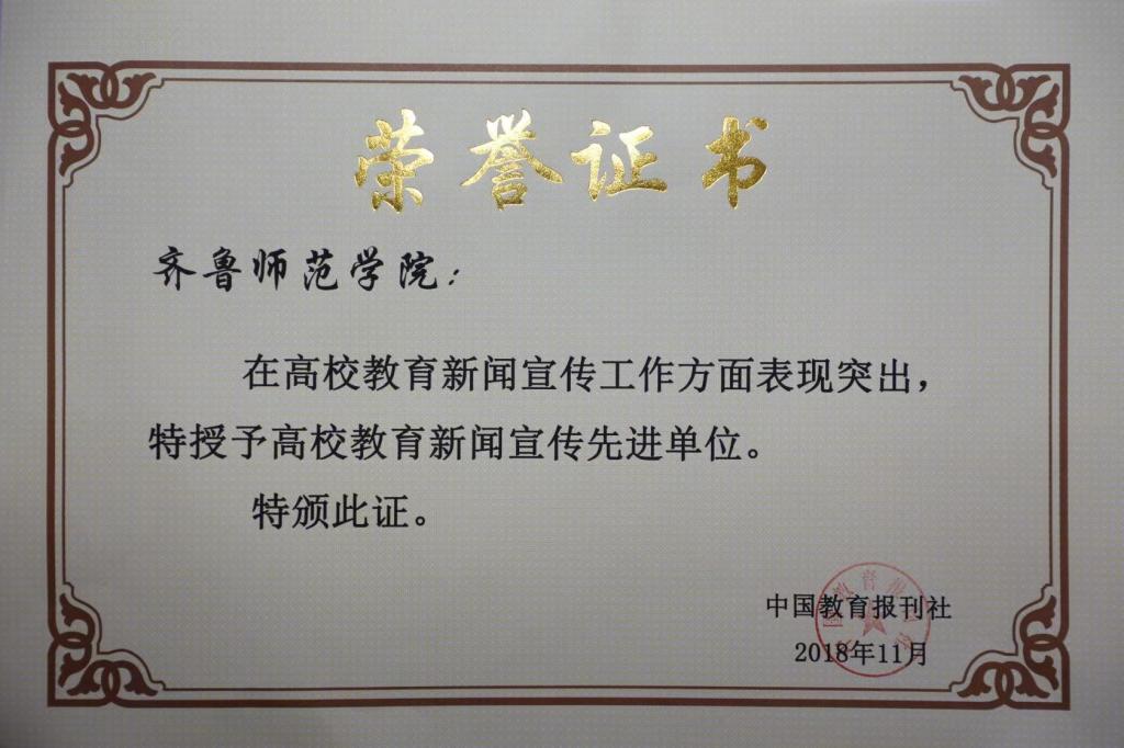 近日,中国教育报刊社2018年山东省教育新闻宣传工作表彰暨经验交流会在济南举行。全讯白菜官网被授予“高校教育新闻宣传先进单位”荣誉称号,党委宣传部部长兼教师工作部部长孔嵩峰荣获“教育新闻宣传先进个人”荣誉称号。