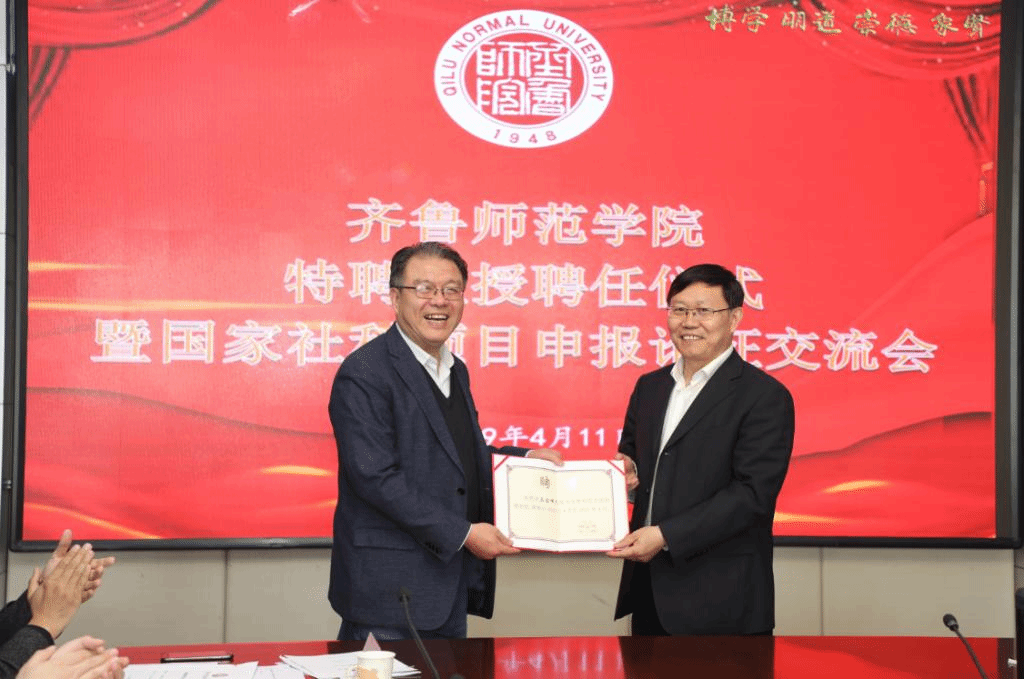 4月11日,教育部长江学者特聘教授、中国人民大学二级教授、博士生导师马俊峰聘任仪式暨国家社科项目申报论证交流会在章丘校区举行,党委副书记、校长林松柏教授为马俊峰颁发聘书,人事处、科研处和马克思主义学院全体教师及学生代表参加仪式。