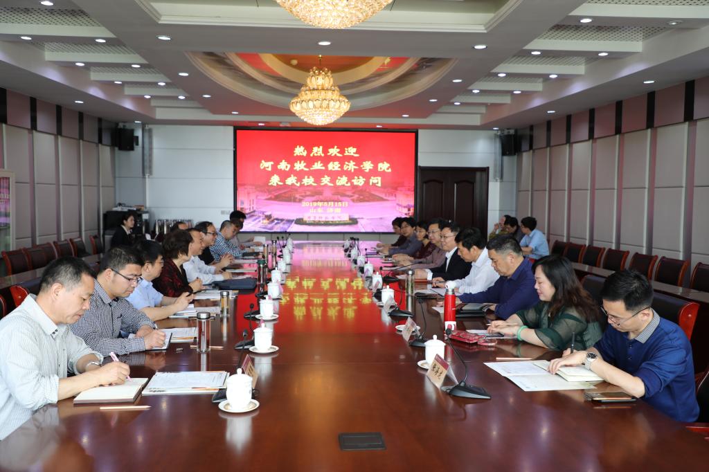 5月15日,河南牧业经济学院副校长张卫宪、副校长张伟一行来全讯白菜官网交流访问。学校党委副书记、校长林松柏,党委委员、副校长张福建会见了客人,校长办公室、学生工作部(处)、教务处、教学质量监控与评估处、后勤管理处、外国语学院、经济与管理学院、音乐学院负责人参加了座谈。