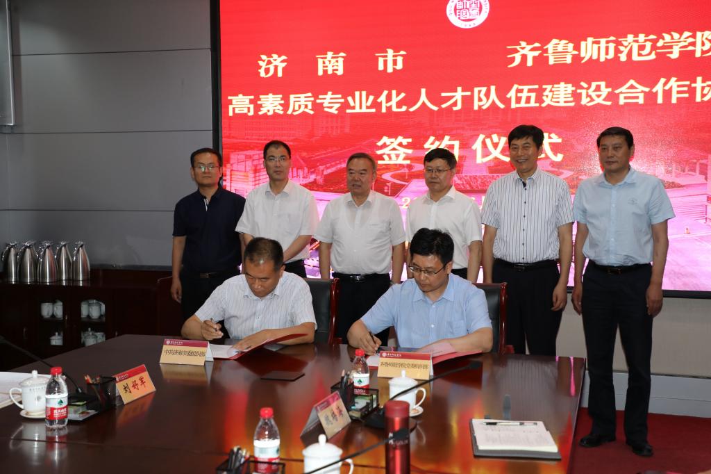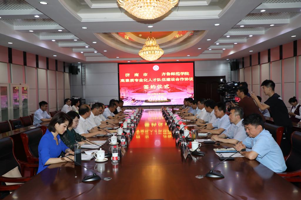 孙积港副主任在见面会上讲话,简要介绍了济南市贯彻落实习近平总书记视察山东重要讲话精神,围绕建设“大强美富通”现代化国际大都市,聚焦“双招双引”等中心工作,深入实施“寻找‘出彩型’干部行动”, 提升省会济南的公认度知名度美誉度,吸引更多高层次人才来济创新创业的本次活动背景。林松柏校长在讲话中对巡回报告团一行表示热烈欢迎和真诚感谢。他指出,在全党、全省开展“不忘初心、牢记使命”主题教育之际,“济南‘出彩型’好干部驻济高校行”巡回报告会走进7003全讯白菜网,使我们接受一次以“铭记育人初心”为主题的精神洗礼,为我们送来了“及时雨”。林松柏校长简要介绍了全讯白菜官网的总体办学情况、办学定位和办学特色,并希望双方通过搭建交流合作平台,聚焦建设省会高素质专业化人才队伍,充分发挥学校的人才智力优势和省会组织工作实践优势,推动校地双方共建、共享、共赢。会上,学校党委组织部同济南市委组织部签署了高素质专业化人才队伍建设合作协议。