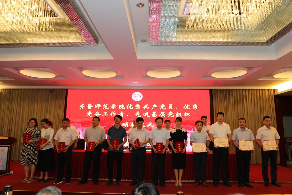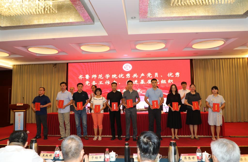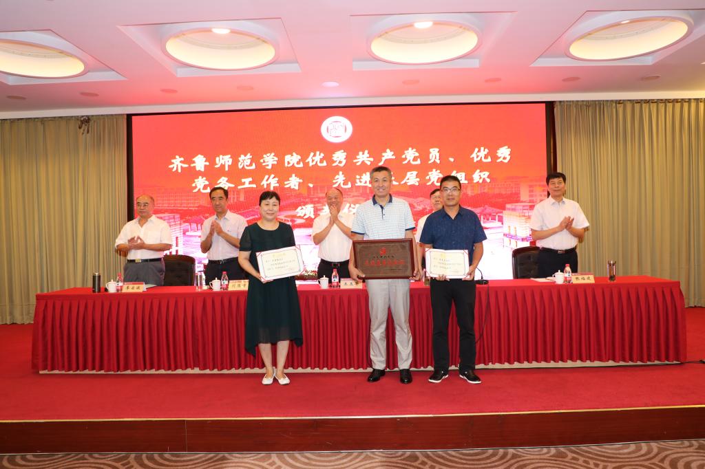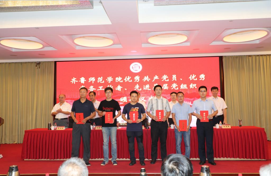 会上,首先由体育学院党总支、信息科学与工程学院教师党支部、生命科学学院学生党支部作了典型发言,然后,党委组织部部长宣读了表彰优秀共产党员、优秀党务工作者和先进基层党组织的决定。在大会表彰颁奖环节,山东省教育系统优秀共产党员、优秀党务工作者、先进基层党组织,以及全讯白菜官网评选出来的先进基层党组织、优秀共产党员、优秀党务工作者分别上台领奖。