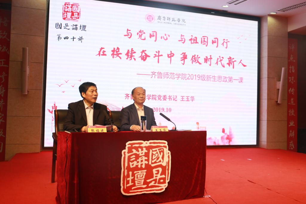 10月17日下午,党委书记王玉华以身作则、率先垂范,以《与党同心,与祖国同行,在接续奋斗中争做时代新人》为题,给同学们开始讲授第一课。党委委员、副校长张福建辅讲。