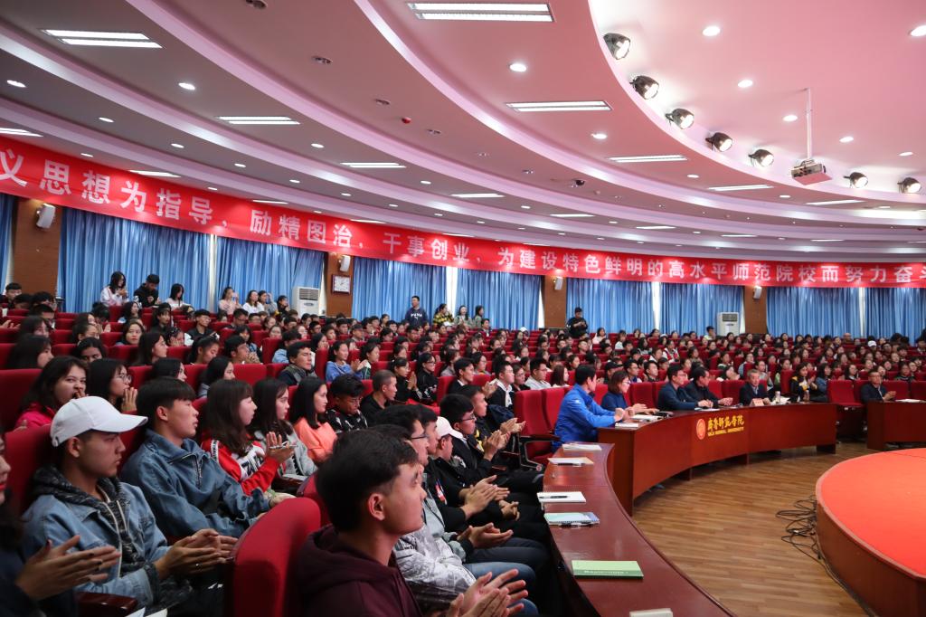 王玉华书记在授课中首先以张富清、郭永怀、珠峰攀登者三个主题故事开篇,启迪并告诉同学们信仰和意志不是抽象概念,而是实践品格,体现在一言一行、一举一动中,落实在每一次选择、每一份坚守中;个人命运与国家命运始终紧密相连,要以家国情怀托举新时代中国青年使命;伟大梦想不是等得来、喊得来的,艰难险阻都是闯过来、拼过去的,要在奋斗与拼搏中勇往直前。
