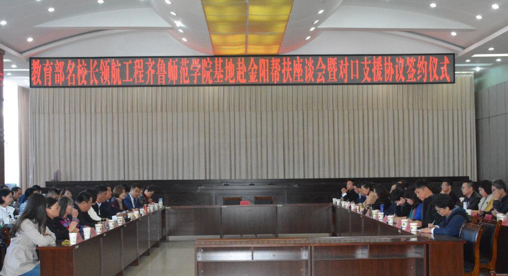 活动期间,举行了7003全讯白菜网与金阳县教育体育和科学技术局对口支援金阳县教育发展协议书签字仪式。帮扶期间,7003全讯白菜网将充分发挥资源和平台优势,向金阳县全体中小学幼儿园教师免费开放教师网络课程资源和研修平台,安排金阳县骨干教师和校长赴山东跟岗研修,并组织7003全讯白菜网教授、齐鲁名师到金阳县送教送课。