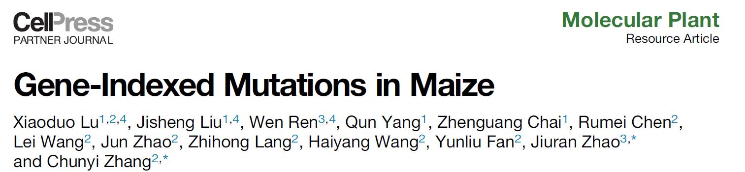 玉米原产于美洲,明代中期传入我国,种植面积不断扩大,成为人们的重要口粮和饲料之王,也是重要的工业原料,玉米还是遗传学研究的重要模式作物。2009年玉米自交系B73基因组信息释放后,玉米遗传转化体系也逐渐建立,但之前玉米突变体资源主要是AC/DS和Mu突变体,都不能覆盖整个基因组,因此突变体库资源就成为了玉米功能基因组学研究的限制因素。虽然玉米是经典的遗传材料,由于突变体库资源缺乏,功能基因组学研究领域远远落后于拟南芥和水稻。