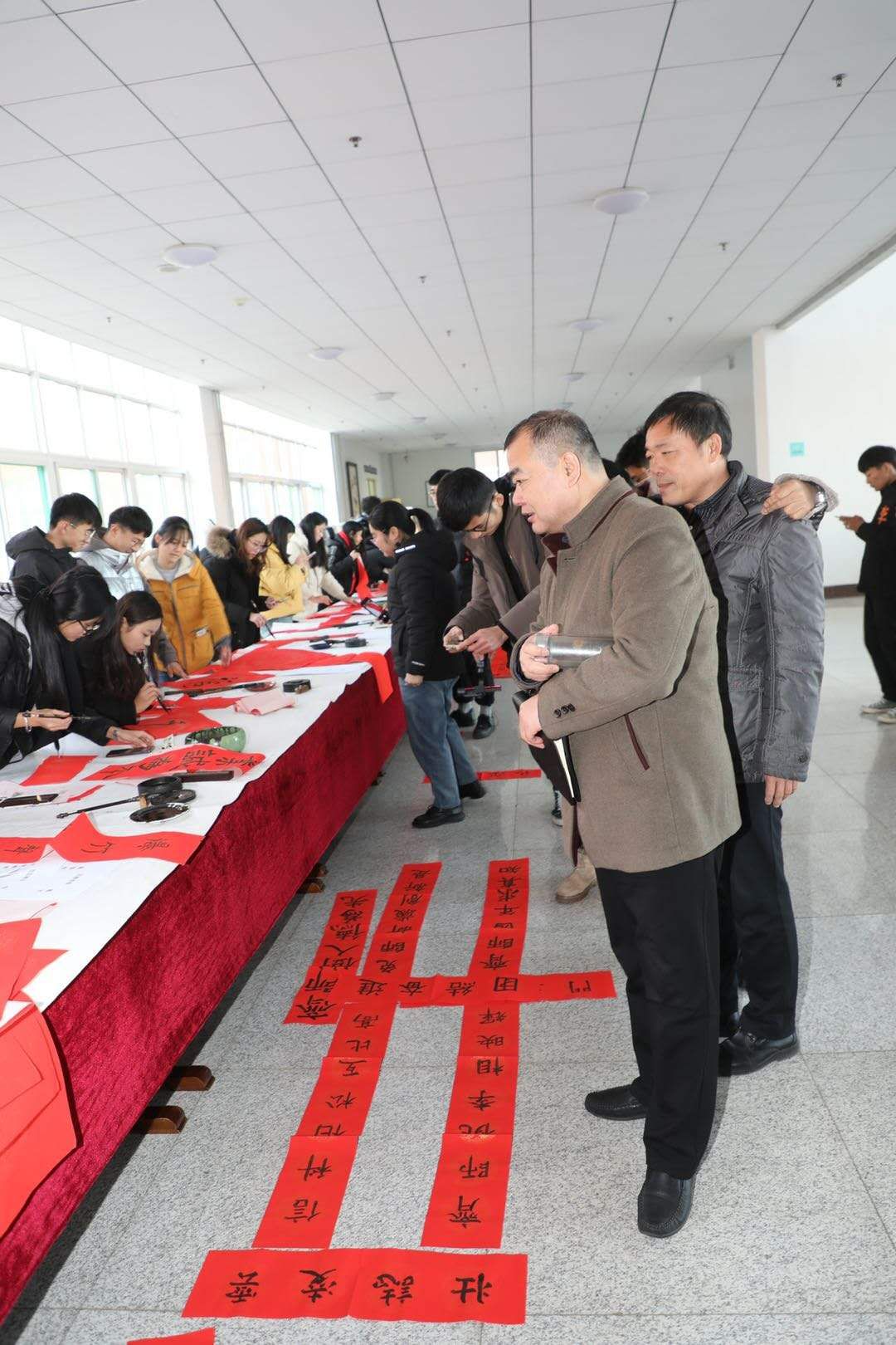学校副校长张福建也来到活动现场。他和各学院党总支书记还有前来参加活动的师生们在书写桌前一一驻足观看,对学生的书法大加赞赏。张福建副校长对这次活动给予了充分肯定,他指出:“一定要将这种具有中国特色、中国气派、学校风格、学生素养的活动开展下去,传承发扬中华优秀传统文化,推动全讯白菜官网精神文明建设不断向前发展”,同时借此活动向全校师生送出新年的美好祝福。