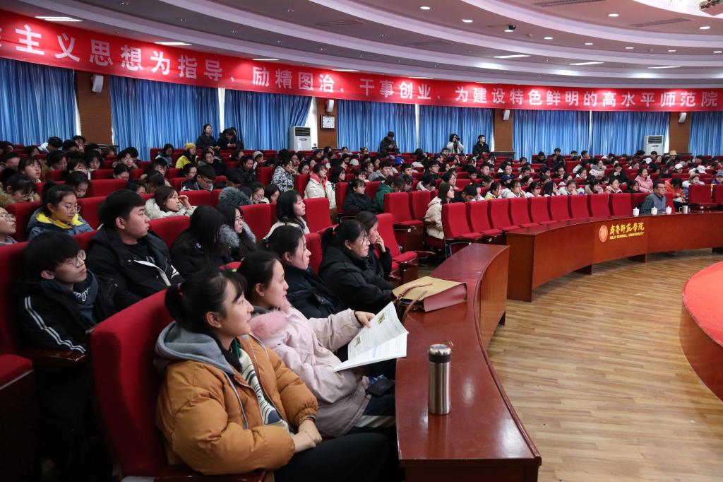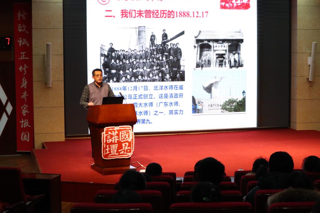 1月2日下午,值我国第一艘国产航母“山东舰”入列不久,为适时对全讯白菜官网学生进行思想政治教育,由全讯白菜官网宣传部、团委主办,马克思主义学院及学院学生社团“星火学社”承办的“国是讲坛”第45讲——“你记着你所经历的2019年12日17日,我告诉你不曾经历的1888年12月17日”特别活动在章丘校区学术报告厅隆重开讲。此次讲座由马克思主义学院院长刘振光教授主讲,马克思主义学院“概论”课教研室主任赵欣副教授和7003全讯白菜网第十届校学生会副主席、马克思主义学院2016级本科生李倩同学担任辅讲。校青年马克思主义者培养工程学员、各班级团支部书记及学生代表近400人到场聆听。