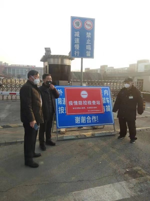 在疫情面前,安全管理处迅速行动,第一时间落实校门封闭管控措施,将章丘校区东门封闭,只留北门作为出入通道。切断齐鲁师范苑与学校之间的通道,大门口设置劝返点,非本校人员、车辆一律禁止进入,所有入校人员严格登记、测量体温正常方可进入。严峻形势下,安全管理处充分发挥党员干部先锋模范带头作用,实行党员干部值守,值班人员校门值班制度,与保安队员共同坚守在校园“战疫第一线”。全体安保人员临危受命,不顾个人安危,没有一人退缩,积极要求参加一线工作。从人员劝返、车辆排查、证件查验、体温测量、信息登记,严密把好入校第一关;值班备勤、巡逻检查、清洁消毒,守好阵地“责任田”;重点排查、严格值守、联防联控,护好生活区“院内人”。截至目前,共劝返各类探亲人员150余人次,各类车辆50余台次,劝返入校锻炼人员70余人次,劝阻外卖入校30余人次。