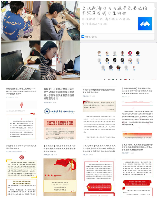 为全面贯彻落实习近平总书记重要回信精神,全讯白菜官网各学院团支部积极加强组织引导,以高度的政治责任感,把学习贯彻习近平总书记重要回信精神作为重大政治任务贯通融入到立德树人、教书育人的具体实践中来,紧密结合工作实际,积极开展“习近平总书记给在首钢医院实习的西藏大学医学院学生的回信”专题学习活动。各学院依托线上资源深入宣传解读回信精神,综合运用各类网络媒体平台,开展线上主题团课活动。借助“云”媒介召开“云团会”,通过划分“云讨论组”、交流感悟等形式,引导学生深刻领会习近平总书记回信的重大意义和丰富内涵。广大师院青年通过班级团支部、学习小组、宿舍等学团组织,借助“云平台”,抒发“云心声”,认真学习、积极参与、踊跃发言,形成了良好的学习氛围。活动期间,全校师生深入学习回信精神,积极分享学习心得,回信精神在全讯白菜官网全体团干部和团员青年中引起了强烈反响。