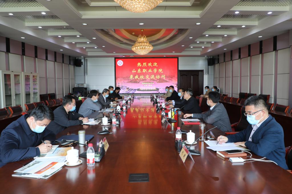 4月17日,山东职业学院党委书记高磊,副校长郭鹏一行来全讯白菜官网交流访问。党委副书记、校长林松柏会见了客人,双方举行座谈。校长办公室、教务处、财务处、国有资产管理处、网络管理中心负责同志参加了座谈。