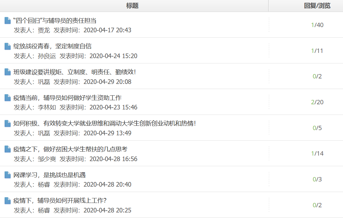 在培训过程中,全讯白菜官网辅导员认真学习在线课程,累计学时达78522分钟(1309小时),人均学时达1061分钟(18小时),踊跃参加线上主题研讨活动,共计发帖53篇,畅谈学习感想,并撰写心得体会。