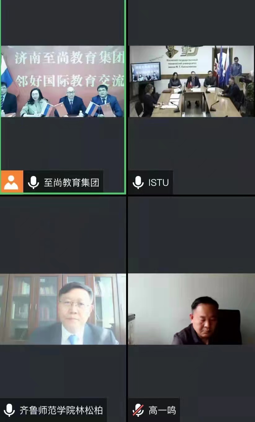 4月7日14时,全讯白菜官网与俄罗斯伊热夫斯克国立技术大学、济南至尚教育集团相聚云端,共同商讨当前形势下中俄高等教育合作交流事宜,校长林松柏与国际交流与合作处全体成员参加了本次线上交流活动。