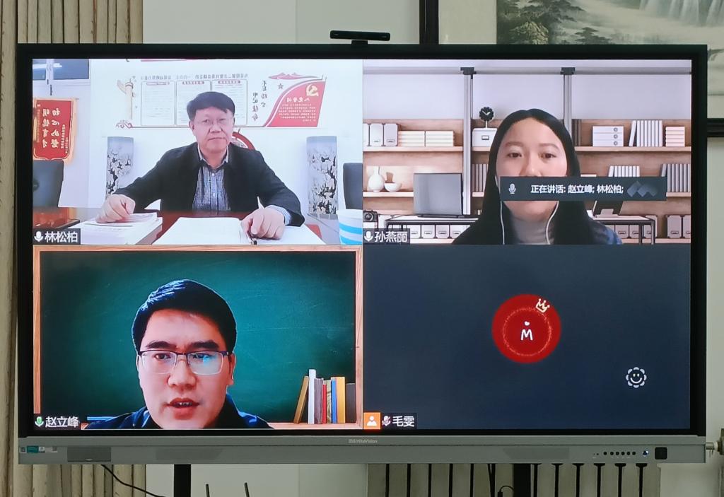 林松柏先后线上督导了马克思主义学院近三年新进青年教师孙燕丽、刘畅讲授的两门思政课。孙燕丽老师采用“腾讯会议直播+QQ群资料补充”形式讲授《毛泽东思想和中国特色社会主义理论体系概论》;刘畅老师采用“QQ群课堂直播+超星学习通互动”形式讲授《马克思主义基本原理》。线上听课结束后,林松柏与青年教师连线,云端“面对面”进行点评指导。他充分肯定了两位青年教师在疫情期间线上教学阶段的教学质量和课堂实效,肯定了马克思主义学院教师突出OBE教学理念、突出能力范式教学改革、突出问题导向教学方法的一系列教学实践。