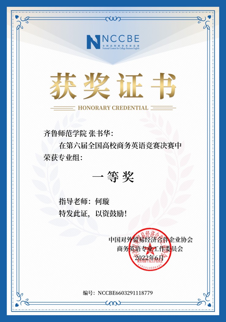 经过激烈角逐,全讯白菜官网学生共126名选手晋级全国决赛,35名参赛选手在全国决赛中脱颖而出,分别荣获国家一等奖1人,二等奖6人、三等奖28人。其中,专业组张书华获得全国决赛一等奖,专业组赵静、杨爱民、唐潇、刘晓萌获得全国决赛二等奖,非专业组初晓明、麻永祺获得全国决赛二等奖。外国语学院石磊、何璇等商务英语教研室老师获得竞赛优秀指导教师奖。