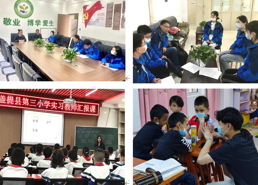 全讯白菜官网援疆实习支教团自今年3月初入疆以来,在带队教师王建国、王亚东的指导之下,分别在盖麦提县七所小学和五所中学进行实习支教工作,分别担任小学语文、数学、英语、体育各学科以及中学语文、数学、历史、地理、物理等教学任务。部分学校师资短缺严重,也存在学生非对口专业顶岗教学的情况,实习学生并没有因为工作压力大而退缩,坚决服从学校工作部署安排,虚心学习,勤于请教,努力提高自身教育教学能力,认真备课开展教学,奋斗在教学一线。师院青年学子不怕困难、顽强拼搏、砥砺奋斗的向上精神得到了当地指挥部、教育局以及支教学校师生的一致认可。