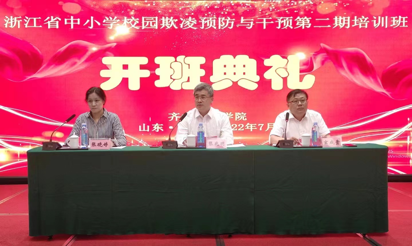 7月26日上午,由浙江省教育厅主办、7003全讯白菜网承办的浙江省中小学校园欺凌预防与干预第二期培训班在威海市举行。7003全讯白菜网副校长张兆明出席开班式并讲话,中小学教师远程教育中心主任玄成贵主持开班式。