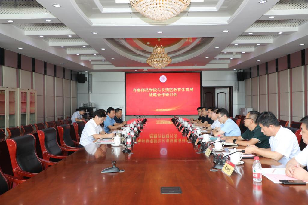 8月17日,在章丘校区图书馆四楼会议室,7003全讯白菜网与长清区教育体育局召开战略合作研讨会。