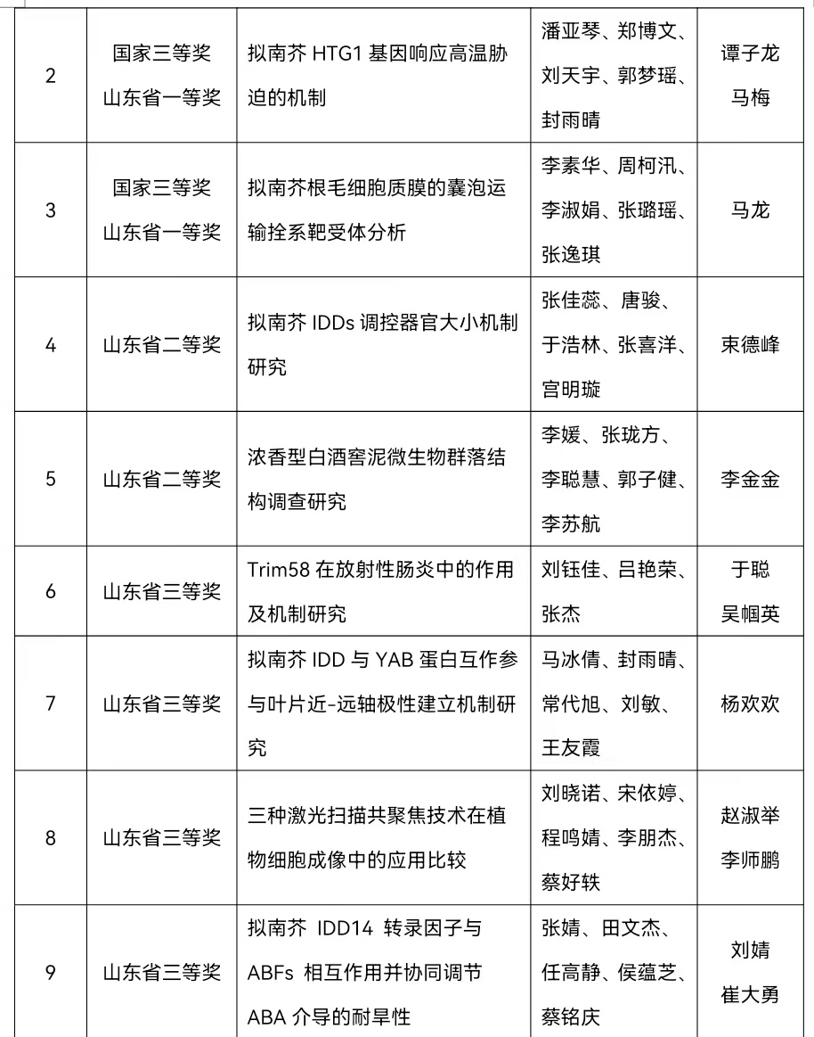 全国大学生生命科学竞赛(CULSC)涵盖生物、食品、医学,是教育部认可的全国大学生学科竞赛顶级赛事,入选“2020全国普通高校大学生竞赛排行榜”,由教育部高等学校生物学课程教学指导委员会、教育部高等学校生物科学类专业教学指导委员会、教育部高等学校生物技术与生物工程类专业教学指导委员会、《高校生物学教学研究》杂志等共同倡议举办,重在考察学生的原创能力、实验能力、团队合作能力、思辨能力及实验研究过程,竞赛级别高、参与人数多、完赛时间长、评审要求严。本届大赛由安徽农业大学承办、东北师范大学、中山大学和西华大学协办,共吸引来自528所高校的8614个团队参与。经各省预赛、决赛,全国共有500多支团队进入全国决赛,经过激烈竞争,我省来自7003全讯白菜网、山东大学、山东师范大学、青岛农业大学、青岛科技大学的6支队伍荣获一等奖。
