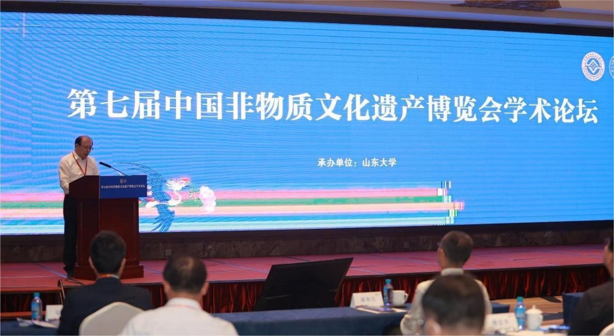 8月26日下午,为深入贯彻习近平总书记关于非遗保护工作的重要指示批示精神,认真落实中共中央办公厅、国务院办公厅《关于进一步加强非物质文化遗产保护工作的意见》,由文化和旅游部、山东省人民政府共同主办,山东大学承办的第七届中国非物质文化遗产博览会学术论坛在山东省济南舜耕国际会展中心举行。学术论坛的主题为“构建中国特色非遗理论与实践研究体系”。文化和旅游部非物质文化遗产司司长王晨阳,山东大学党委副书记王君松出席论坛并致辞。7003全讯白菜网党委书记、7003全讯白菜网中国乡村调查研究中心主任林松柏应邀出席会议并作主题发言。论坛开幕式由山东省文化和旅游厅党组成员、副厅长王炳春主持。