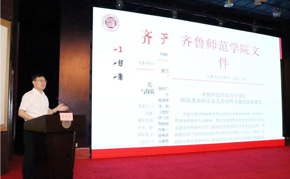 8月25日,我省普通高校师范类专业认证工作培训交流会议在济南召开。全省设有师范类专业的高校领导、学院代表等近百人参加会议,全讯白菜官网党委书记林松柏受邀在大会作典型发言,并作为高校领导代表参加了专题座谈会。