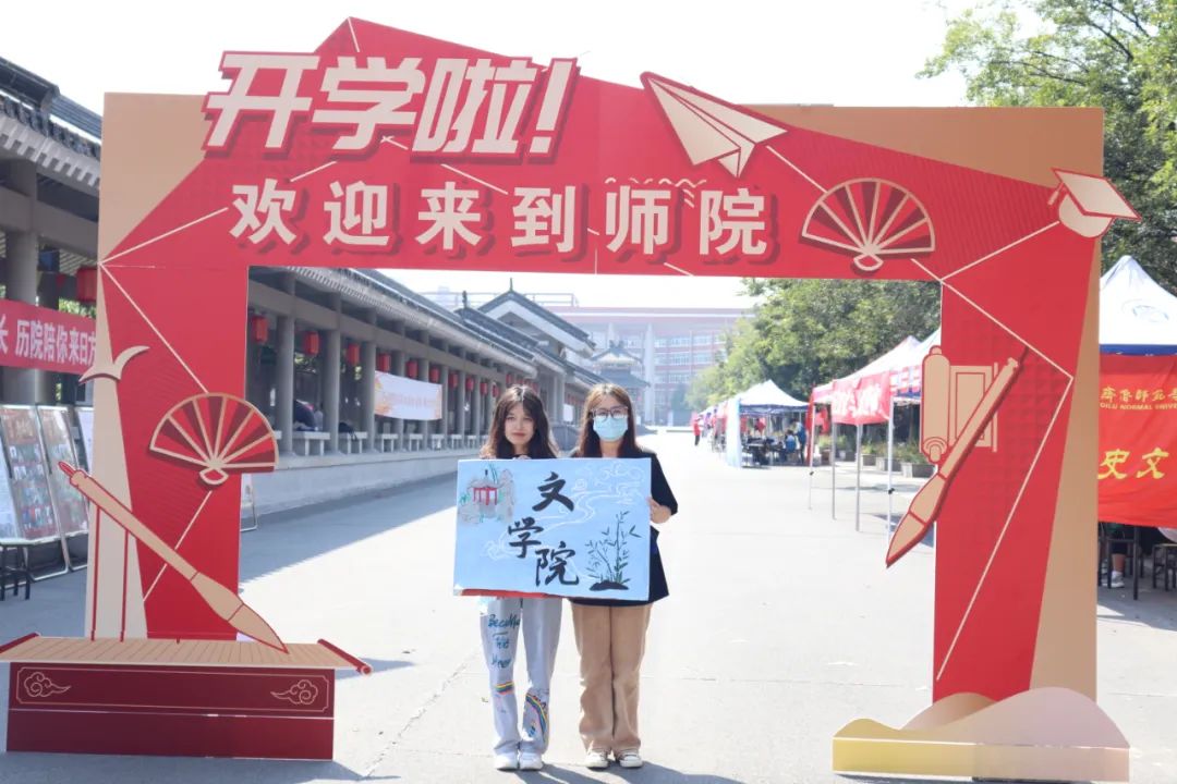 创新方式各显神通。各二级学院打破常规,发挥专长,通过展板、海报等学生喜闻乐见的形式,积极宣传育人成果。精心制作合影板、签名展板、口罩、扇子等创意文化产品,街舞、快板、健美操等各式表演引人入胜,将理想信念教育、爱校荣校教育等融入迎新工作,用挚诚与热情帮助新生尽快融入师院,将心安的种子播撒在新生心中。