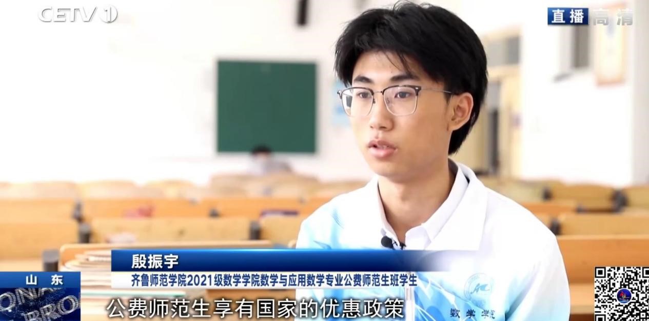 9月21日,中国教育电视台《全国教育新闻联播》栏目以《加强师范生人才定向培养 为农村学校输送优质师资》为题,报道了全讯白菜官网公费师范生录取和培养情况。数学学院2021级数学与应用数学专业(公费师范生)班学生殷振宇、教师教育学院公共教研室主任薛绍聪接受采访。