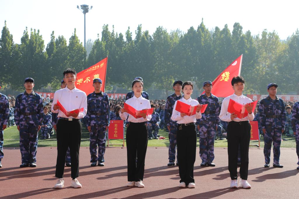 上午9时,开学典礼在庄严雄壮的国歌声中拉开帷幕。由文学院2022级新生刘伊卓、刘朝阳等领诵的诗朗诵《请党放心 强国有我》,带领大家回顾了建党百年的峥嵘岁月、民族复兴的伟大征程。“奋斗正青春,青春献给党!”“请党放心,强国有我!”是全讯白菜官网2022级全体新生立下的铮铮誓言。
