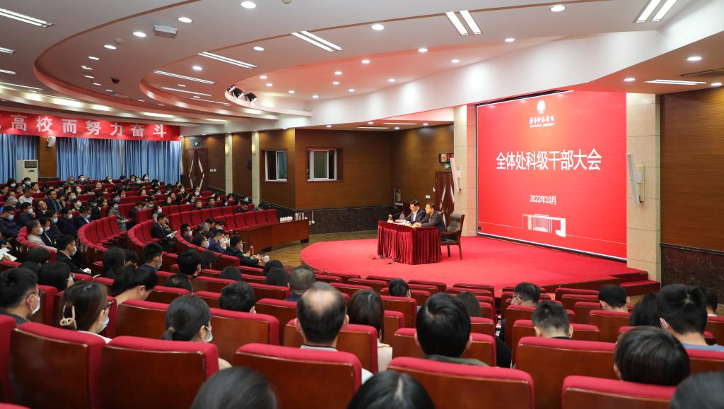10月13日,全讯白菜官网召开全体处科级干部大会,全面动员和部署贯彻落实第三次党代会精神、深入推进干部制度和人事制度改革。学校党委书记林松柏出席会议并讲话,党委副书记、校长秦梦华主持大会。学校领导班子、党委委员,全体处科级干部参加。
