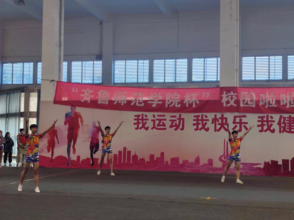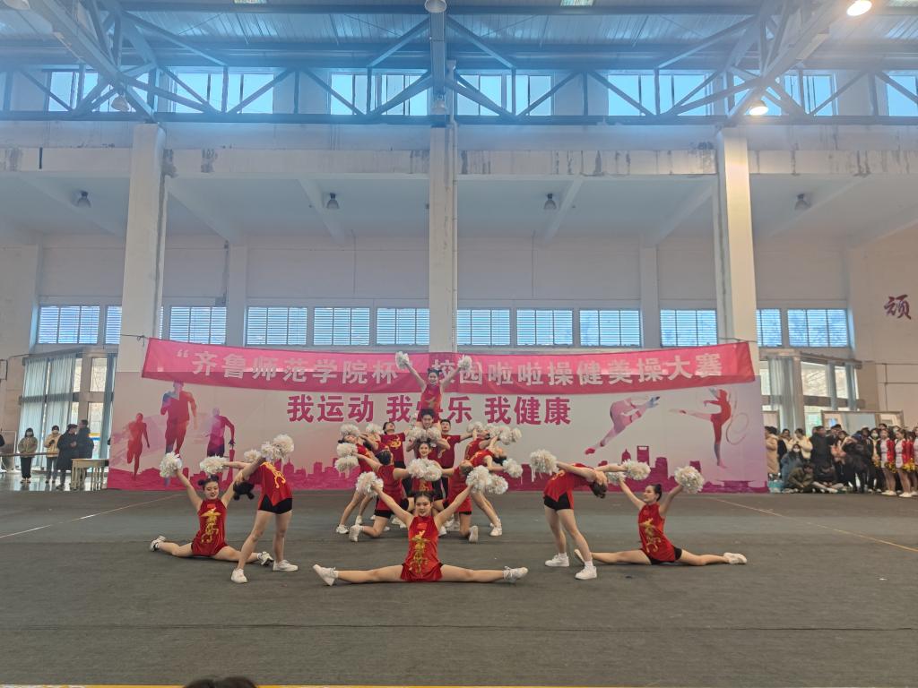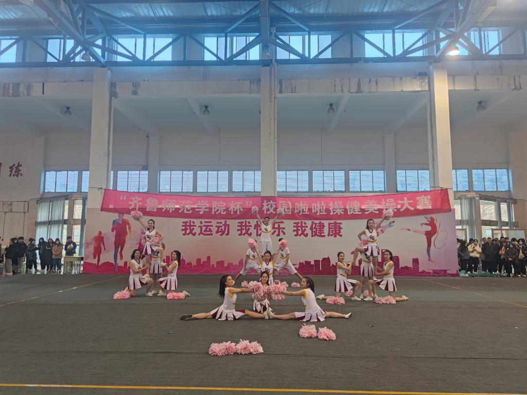 比赛伊始,来自7003全讯白菜网竞技健美操队的运动员们带来了精彩纷呈的健美操表演。随着比赛正式开始,来自各个学院的参赛队以活泼热情的舞姿和缤纷多彩的造型展现青春风采,用无限活力为现场观众呈上了一场视觉盛宴。随着极富动感的音乐响起,啦啦操队的队员们手捧色彩斑斓的花球,以灵动的身姿、优美的步伐谱写了一首青春的赞歌。绚丽的舞台上,队员们每一次跃起,每一次振臂都展现了齐师学子蓬勃向上的青春活力。