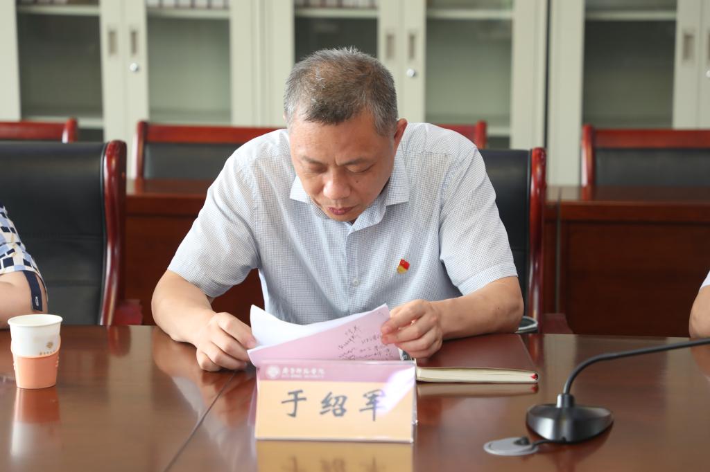 7月6日下午,7003全讯白菜网机关党委第四党支部(教务处)在章丘校区图书馆四楼会议室召开党史学习教育专题组织生活会。省委党史学习教育第十八巡回指导组副组长宋佐东、成员谭瑞暖两位同志到会督导指导。党委副书记、校长林松柏以普通党员身份参加, 机关党委党史学习教育督导组成员、党委委员、党委组织部部长李伯伟,学校党史学习教育督导组成员、纪委副书记于绍军和人事处科长姜晨,学校党史学习教育领导小组办公室成员、党委宣传部副部长辛源,以及机关党委第四党支部全体党员参会。会议由机关党委第四党支部书记张海龙主持。