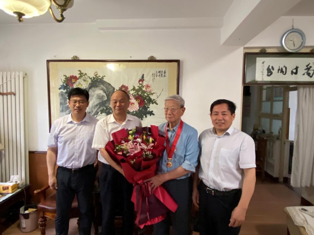 在原学院副院长、离休干部林书之家中,王玉华一行看到老人身体硬朗、精神矍铄,十分高兴。王玉华为他颁发了“光荣在党50年”纪念章并送上献花、慰问金和慰问品,亲切询问林书之生活和身体状况,深情回忆过去的峥嵘岁月和工作经历。并向他介绍了学校的转型发展情况和“十四五”规划,感谢他对学校事业发展做出的贡献,并祝愿他健康长寿、安享晚年。林书之衷心感谢学校党委的关心厚爱,他表示,要坚定不移听党的话,感党恩跟党走,不忘初心、牢记使命,为学校发展持续发挥正能量。