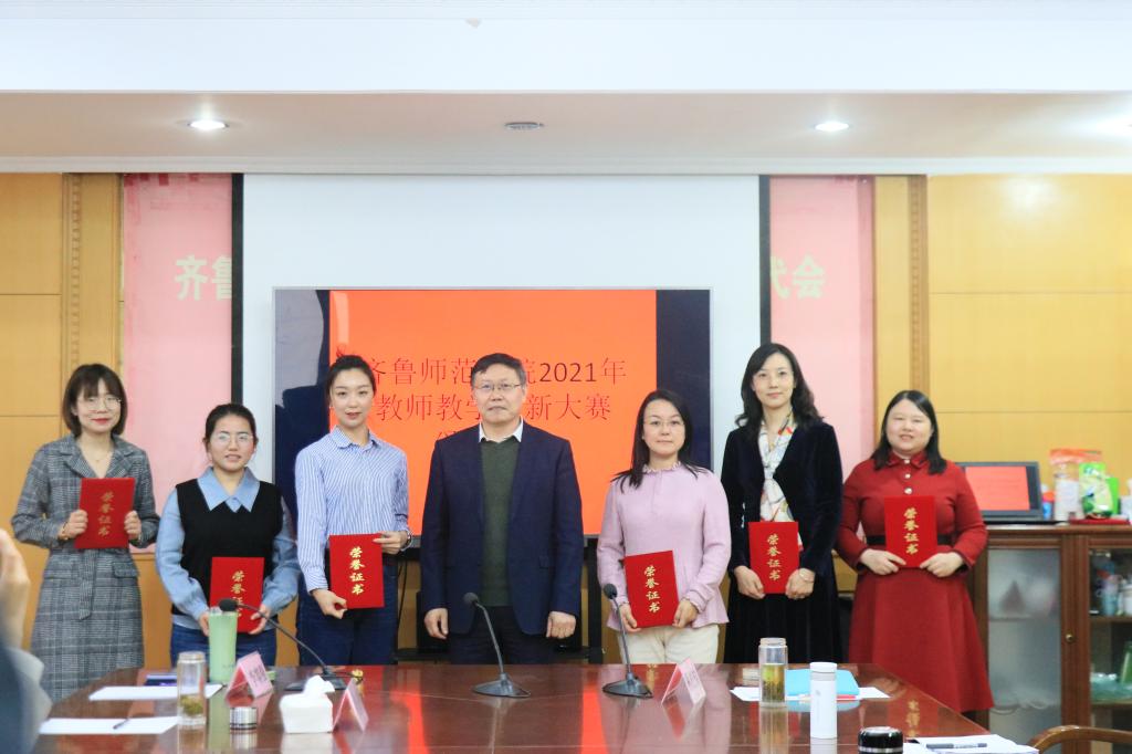 本次大赛分为中级组和副教授组,来自全校14个学院的26位教师参加了本次比赛。学校聘请校内外专家担任评委,专家评委从理念与目标、教学内容、过程与方法、考评与反馈等多方面对参赛选手进行评价打分。参赛教师在教学创新设计汇报环节,着装典雅规范、精神饱满充沛;教学目标基于OBE理念的基本内涵,坚持学生中心、产出导向、持续改进,重视学生高阶能力的培养;教学内容注重思政元素的嵌入,努力做到课程内容有深度、广度;教学过程与方法体现知识、技能和情感的培育,帮助学生成为自主学习者;考评与反馈讲求过程性评价与终结性评价相结合,合理评价学生知识、技能的掌握情况。经过激烈的比赛,邹德平、边迦、王琳、司伟获中级组一等奖,赵青、杨斌获副教授组的一等奖。现场对获奖教师进行了颁奖。