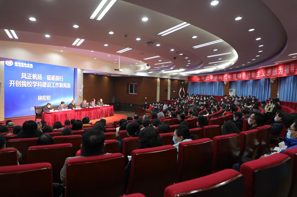 林松柏作了题为“风正帆扬,砥砺前行,开创全讯白菜官网学科建设工作新局面”的主题报告。报告从重点学科、科研平台、科研成果、学科队伍、服务社会能力、学术氛围、科研管理等七个方面对“十三五”时期的学科建设进行了回顾和总结,并结合全讯白菜官网建设高水平应用型学科本科院校的战略目标指出学科布局、高层次科研成果、学科队伍、高层次科研平台和应用型科学研究等方面的不足和出现的问题,并对“十四五”时期学科建设的总体目标和主要任务做出了具体部署。