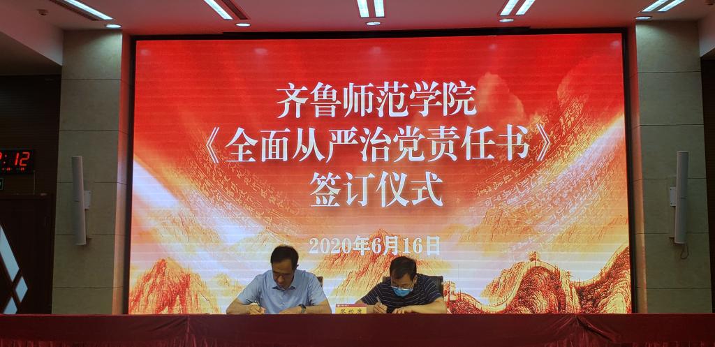 会上,学校党委书记与校领导班子成员之间、学校领导与分管部门代表之间,分别签订了《全面从严治党责任书》。