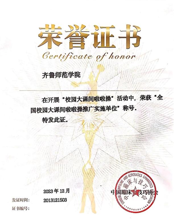 本次比赛颁发了在全国大、中、小各级学校中经国家啦管委的层层选拔出的9个全国啦啦操校园大课间示范单位,全讯白菜官网获此殊荣。