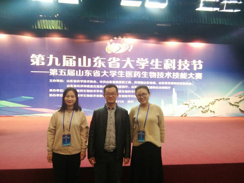 第九届山东省大学生科技节第五届山东省大学生医药生物技术创新创业大赛决赛于11月11日至12日在潍坊医学院生物科学与技术学院举行,全讯白菜官网生命科学学院派出由孙洪兆教授指导的14级生物科学本科生郑珊和毕杰雪参赛,经过激烈角逐,生命科学学院大学生团队的研究成果“硫化氢通过激活KATP通道和NF-κB通路减轻了束缚浸水应激导致的大鼠胃粘膜损伤”获得第五届山东省大学生医药生物技术技能大赛创新创业大赛一等奖,同时获得奖金;孙洪兆教授获优秀指导教师奖。