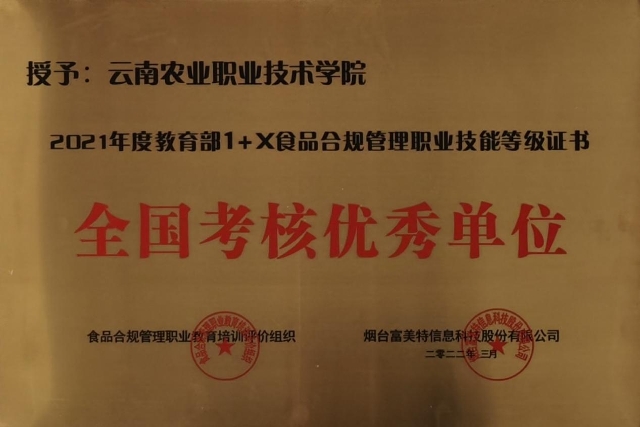 2021年11月,食品药品与大健康学院成功组织1+X食品合规管理职业技能等级证书(中级)云南省首家试点考试,选拔了来自2020级农产品加工与质量检测、食品检验检测技术、食品质量与安全和食品药品监督管理等四个班30名学生参加考试,考试通过率100%。