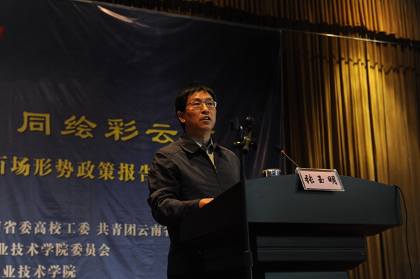 为深入学习贯彻习近平总书记系列重要讲话精神,认真落实省委关于探索创新高校大学生形势政策教育的有效形式,组织开展“共筑中国梦,同绘彩云南”2015年云南省高校百场形势政策报告会的指示要求,10月23日下午,best365邀请省农业厅党组书记、厅长张玉明同志到学校茭菱校区大礼堂作形势政策专题报告。报告会由学校党委书记崔金赋主持。学校副科以上领导干部、班主任、辅导员,相关部门全体干部职工和部分学生济济一堂聆听了报告。