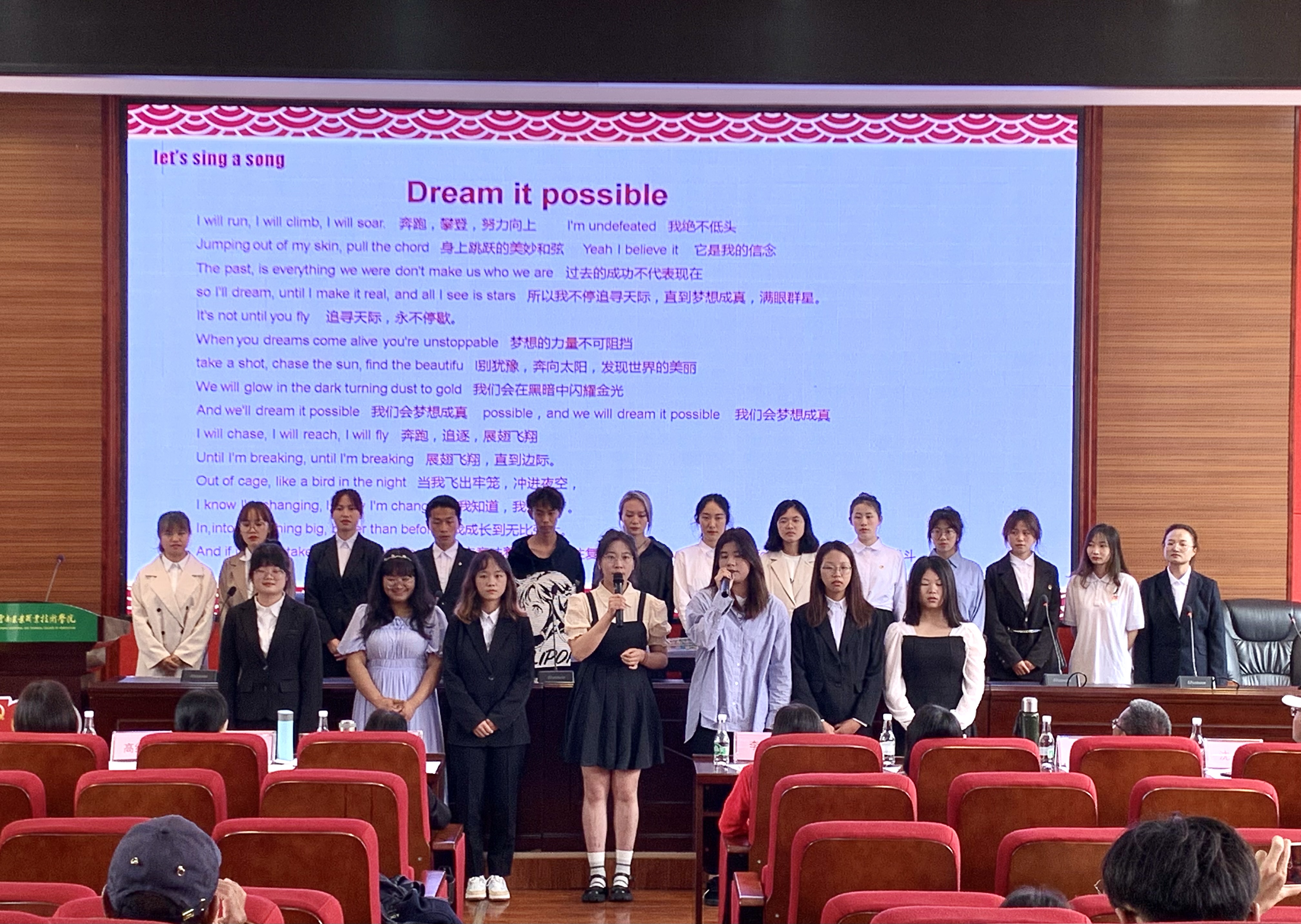 总决赛在参赛选手合唱英文歌曲“dream it possible”中拉开序幕,主持人介绍了到场领导和评委,并宣布比赛规则;基础部党总支书记、主任孔令书老师宣布大赛开始。