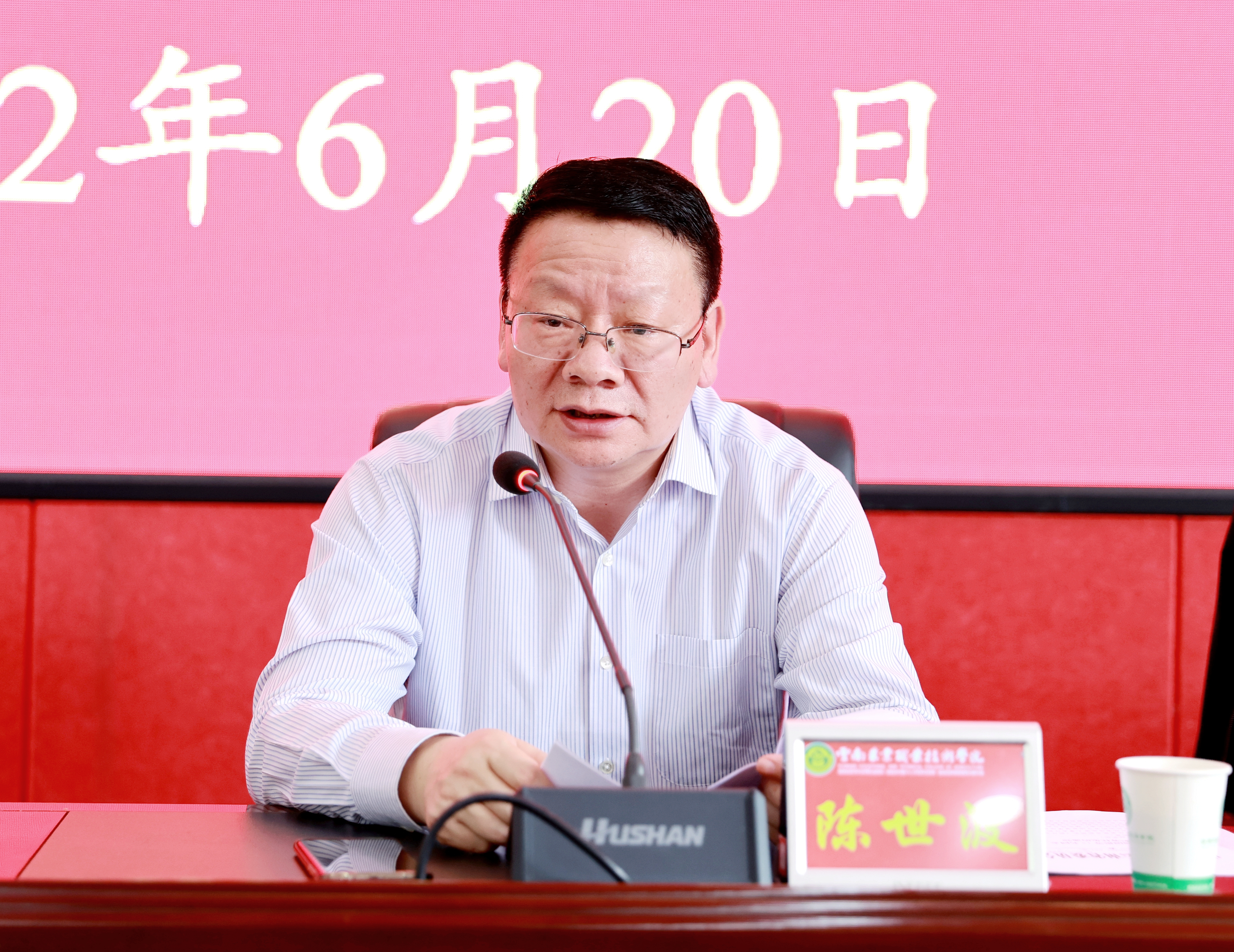 会上,陈世波副书记宣读了省委关于陈太安同志任best365中国官方网站院长的任职决定并作重要讲话。陈世波副书记在讲话中充分肯定了学院近年来发展取得的成绩,介绍了陈太安同志有关情况,并代表省委教育工委对学院班子建设和学院发展提出4点意见。一是讲政治顾大局,坚定不移贯彻落实省委决定精神。希望学院全体教职员工全力支持配合好陈太安同志的工作,希望陈太安同志珍惜组织信任,紧紧团结在以文俊同志为班长的党委领导下,团结班子成员和广大教职员工,不辜负组织重托,不辜负师生期望。二是抓重点固根本,持续提升党建和思政工作质量。学院领导班子要持之以恒加强党的政治建设,推动思想政治工作守正创新,加强干部队伍建设,增强基层党组织政治功能,坚决维护校园安全稳定,着力提升党建工作和思想政治工作质量。三是勇担当善作为,稳步推进学校高质量改革发展。学院新的党政班子要铆定发展目标,理清发展思路、落实发展举措,提升内涵建设,为学院高质量发展注入新的活力。四是强作风提效能,为学校高质量发展营造良好氛围。学院党委要高度重视作风革命、效能革命,改进工作方法,树牢效率意识,积极争创一流,强化作风和纪律建设,打造党风正、校风清、教风良、学风好的良好政治生态和育人环境。陈世波副书记特别强调,下半年将召开党的二十大,学院党政领导班子和干部职工要强化大局意识和整体观念,严防死守校园安全底线。