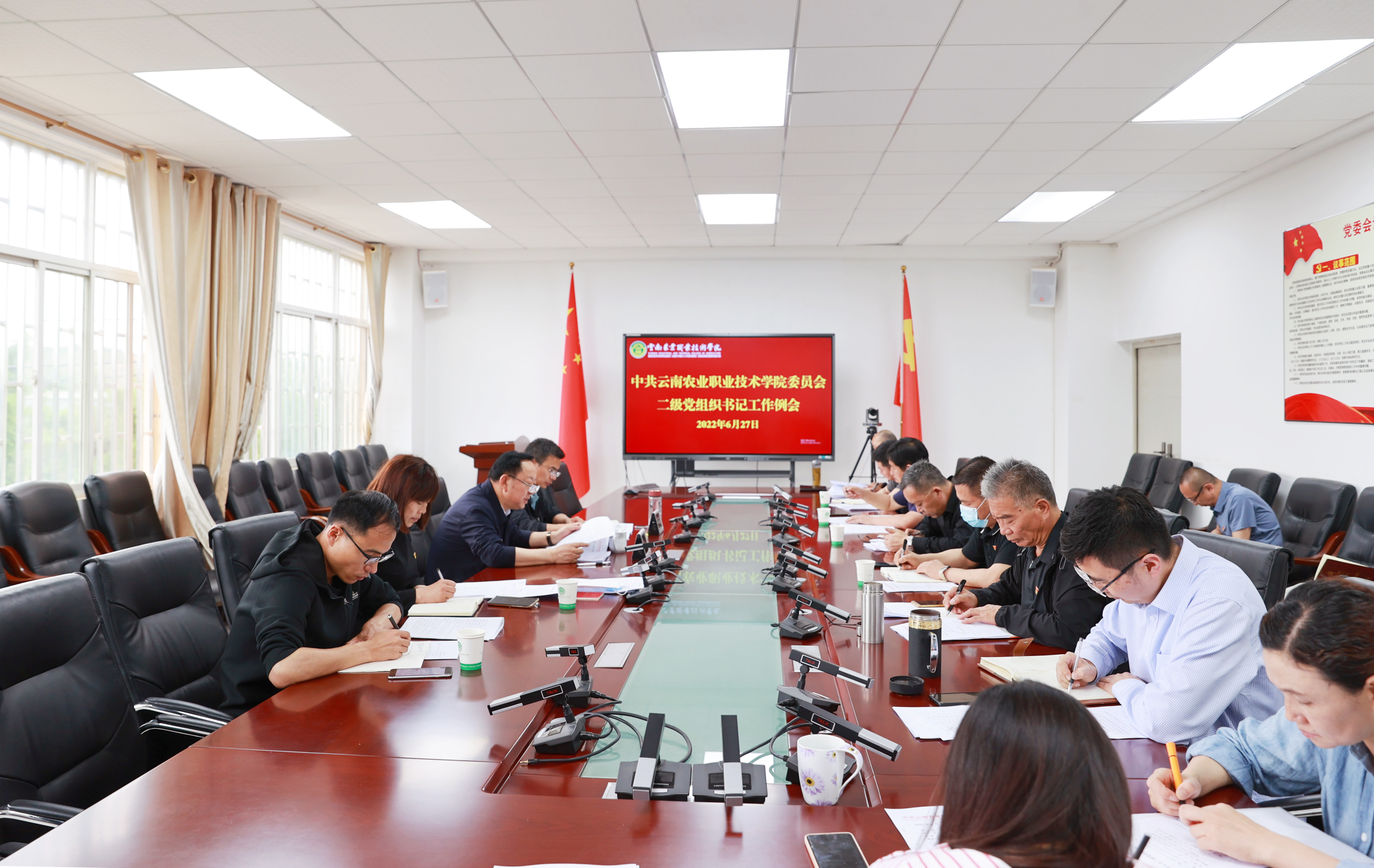 通知中心6月27日,在小哨校区综合楼四楼会议室,学院党委组织召开了6月份二级党组织书记工作例会,党委副书记伍学龙同志,各二级党组织书记,办公室、纪检处、组织部、学生工作部、工会、团委等部门主要负责人和有关工作人员参加会议,会议由学院党委书记文俊主持。