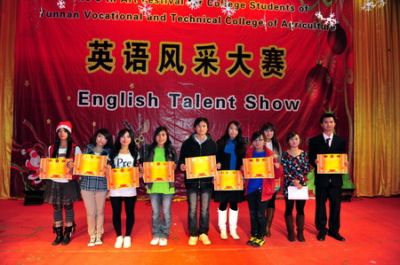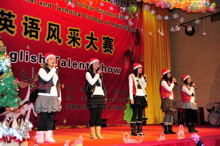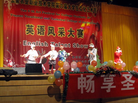此次大赛由基础部和院团委联合主办,院学生会学习部承办,以“畅享圣诞之英,展我农职风采”为主题。经过长达两个多月的精心组织和充分准备, 20个优秀节目从两个校区初赛的46个节目中脱颖而出进入决赛,并同时作为圣诞晚会的表演节目在圣诞前夕和新年到来之际呈现给老师和同学们。